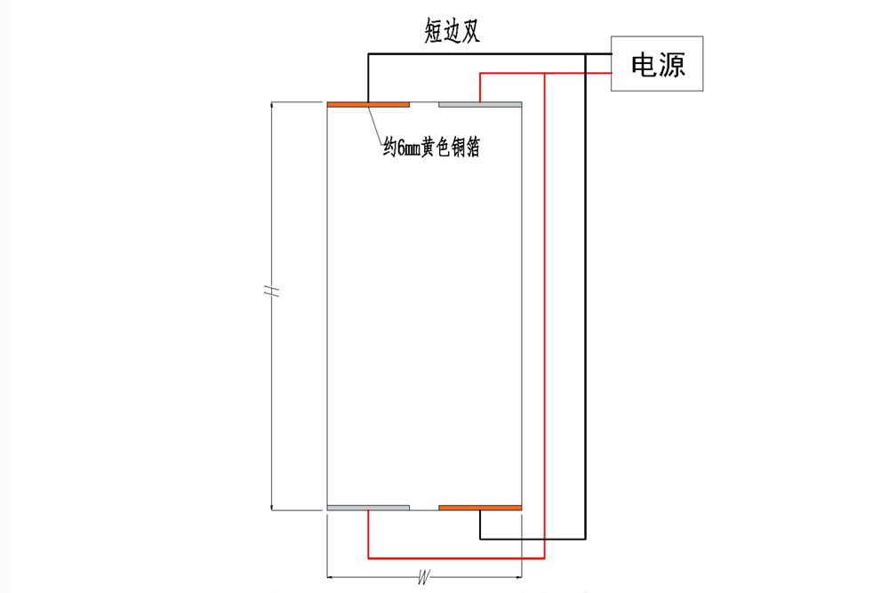 雙電極就是一片玻璃設(shè)兩組電極,共4條線(同時提供另外兩組備用線)。雙電極可以開在兩條短邊,也可以開在某一條長邊,視玻璃大小而定。