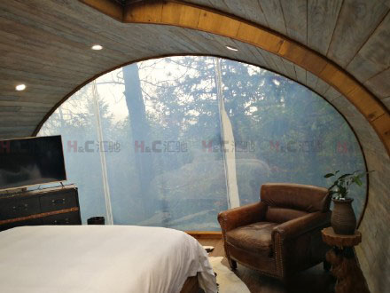 房子的整體為橢圓形設(shè)計(jì),外立面采用“外層防水材料+內(nèi)部木質(zhì)結(jié)構(gòu)”的設(shè)計(jì),輔以玻璃窗采光,并沒(méi)有太多特殊的地方。