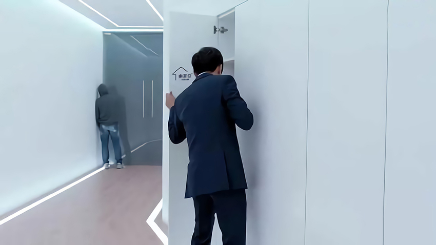 劇中程浩經(jīng)常瀟灑的按一下遙控器,然后整個透明的玻璃就變成了純白色,原本透光的玻璃瞬間就像拉上了窗簾一樣。