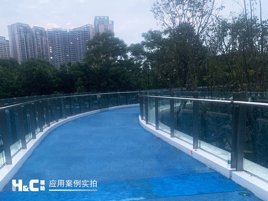 “絲路云錦”有三條跨線橋,外形設(shè)計靈感來源于“竹葉輕”,其中一座橋上的護(hù)欄采用了匯馳LED發(fā)光玻璃。它將單個LED點光源封裝在兩片鋼化安全玻璃中間,并使用隱線工藝,不細(xì)看基本看不到線路,這樣既保持了玻璃的透明特性,又可以控制呈現(xiàn)光電效果,創(chuàng)造出美妙的空間,起到獨特的裝飾和調(diào)節(jié)場景氛圍的作用。